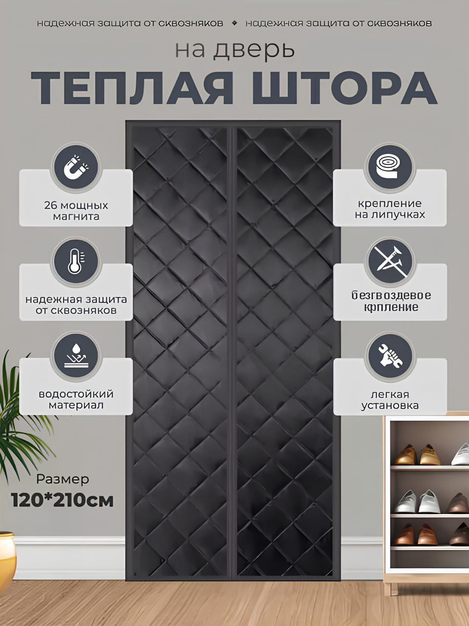 Теплая штора на магнитах надежно защищает ваш дом от сквозняков, удерживая тепло внутри. Легко устанавливается на любую дверь и замечательно сохраняет комфорт в холодное время года!