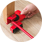 С помощью рычага поднимите нужный вам груз, а затем подставьте роликовые платформы. Благодаря такой системе вы с легкостью сможете передвигать шкафы и столы, не прибегая к услугам грузчиков и не повреждая напольные покрытия.